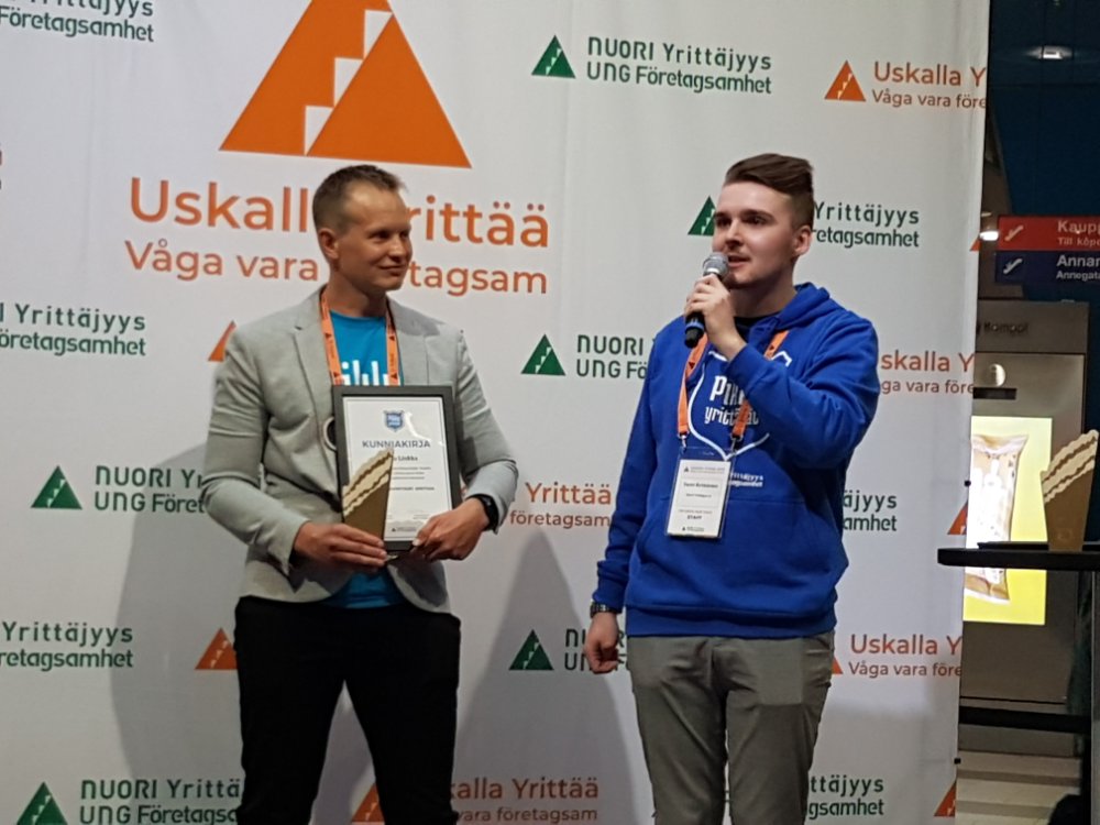 Mikko Liukka valittiin Vuoden 2019 Pikkuyrittäjät Opettajaksi. Hätinen ja Liukka opiskelivat lukiossa samaan aikaan ja ottivat vastaan molemmanpuoliset onnittelut saavutuksista yrittäjyyden edistämiseksi!