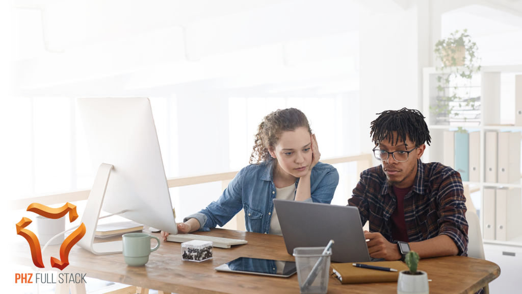 Tiimityö ja osaamisen kehittäminen ovat PHZ Full Stackin ydinarvoja. Pyrimme päivittäin oppimaan jotain uutta – olkoon se täysin uusi ohjelmointikieli tai vaikka ohjelmistokehys.